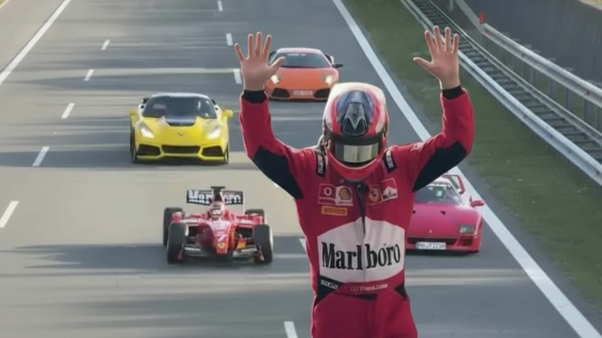 Auf einem TikTok-Video des tschechischen Online-Nachrichtenmagazin Novinky.cz, das anschließend im Netz kursierte, ist ein Konvoi aus Supersportwagen zu sehen, der den roten Formel-Boliden im Marlboro-Design über die Autobahn D4 bei Příbram eskortiert. Neben einem Bentley Continental GTC als möglichem Kamerafahrzeug tauchen auch ein Lamborghini, eine Corvette C7 und ein legendärer Ferrari F40 auf. Der markerschütternde Sound des GP2-Rennwagens mit seinem 4,0-Liter-V8-Saugmotor mit über 600 PS ließ die Telefone bei der Polizei heißlaufen.