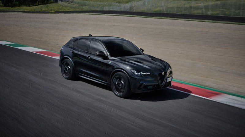 2024 Alfa Romeo Stelvio Super Sport-8 in black driving on track