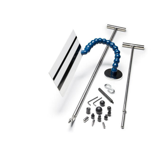 Have you seen those paintless dent repair tools advertised on TV? Do you know anyone who’s actually pulled a dent with one? We didn’t think so. If you really want to try pulling your own dents for car repairs, consider buying this reasonably priced professional-grade paintless dent removal kit. The Lock Technologies LT-820 ($209 from tooldiscounter.com) comes with two adjustable pry rods, 13 interchangeable tips, a magnetic reflector board and a training DVD. We won’t kid you—paintless dent repair is an art. Practice on your kid’s junker before tackling the dent on your Cayenne. Body-shop friends tell me that once you’ve popped about six dents, you’ll get the hang of one of the more frustrating car repairs. — Rick Muscoplat