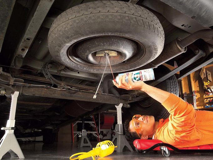 Loosen and lubricate a corroded spare tire lift so you can get to your spare tire when you need it. See how to keep that spare tire lift loose so you can get the tire when you need it.