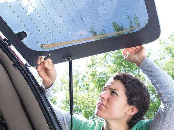 If you’re not confident that you or the driver can change a flat tire, one of the things you do is buy two cans of aerosol tire sealer from any auto parts store (Fix-a-Flat is one well-known brand) and keep them in the vehicle. The cans are sold in several sizes for compact, standard and truck-size tires. Tire sealants work on tread punctures 3/16 in. or less in diameter for fast car repairs. They won’t work on sidewall punctures, blowouts or any other catastrophic failures. You’ve got little to lose by trying sealant as one of your car repairs.