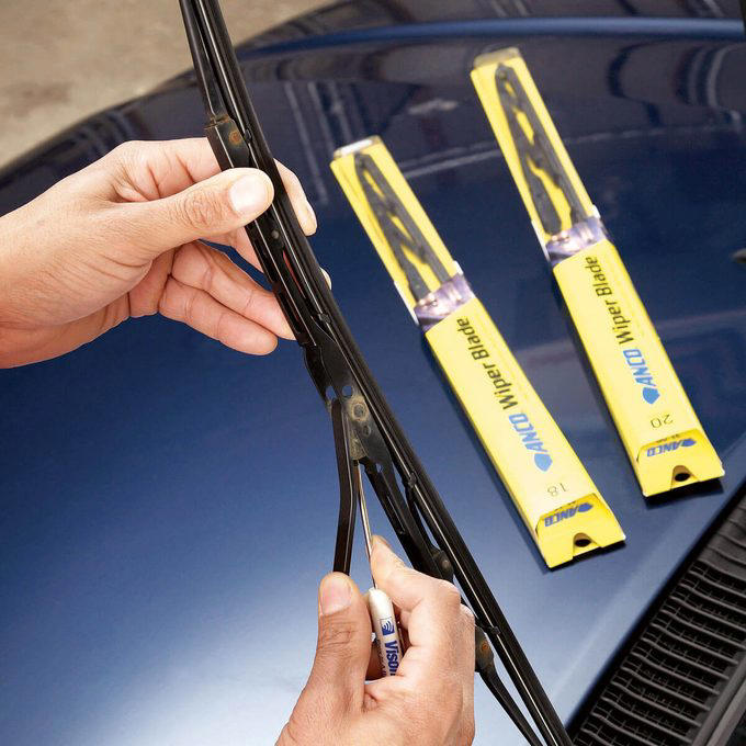 It’s easy to tell when your blades need replacing. Simply press the washer button and see if your blades wipe clean. If they streak, they’re toast. The auto parts store will have lots of economy blades, but go with a name brand instead (ANCO, Trico or Bosch). They cost more than economy blades, but their higher-quality rubber wipes better, has better UV protection and lasts longer.