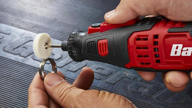 Buying a rotary or oscillating tool usually involves carefully selecting which accessories you'll be most likely to need, but the Bauer 8V Cordless Variable Speed 40-Piece Rotary Tool Kit does away with that hassle. It's designed to cover the most common needs of buyers in one handy kit, with grinding stones, a wire brush, sanding drums, and a polishing wheel all included, among other things.
