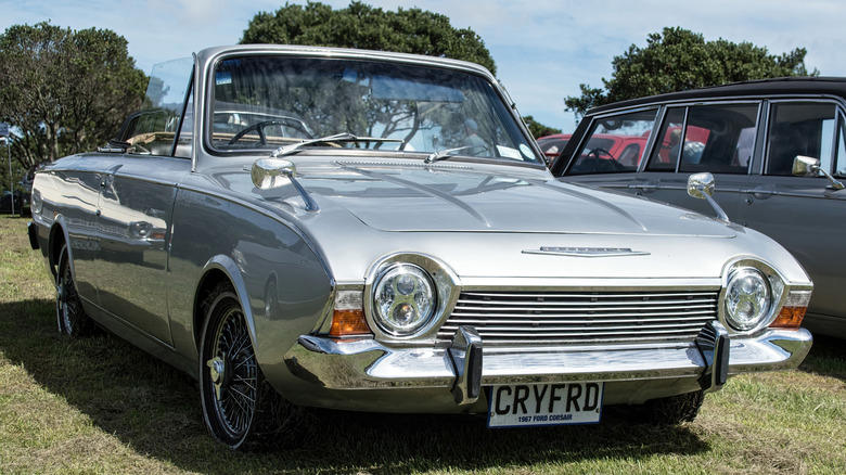 Silver 1960s Ford Corsair on grass