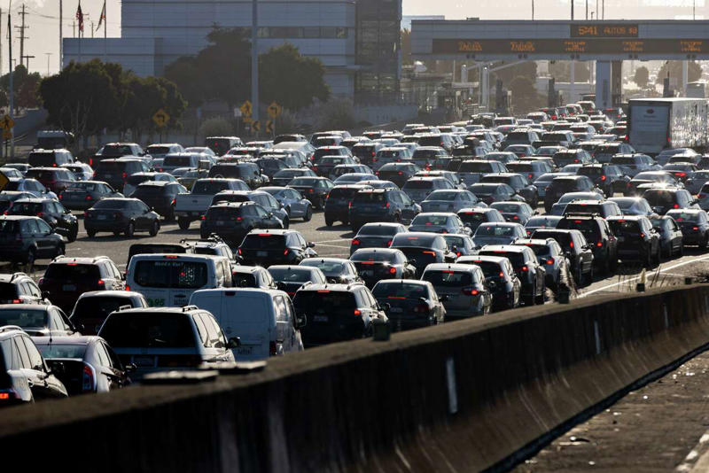 With electric and hybrid vehicles no longer getting access to HOV lanes, unless they have three or more passengers, there's a concern gridlock could get worse in the other lanes, such as these feeding westbound for the Bay Bridge. (Santiago Mejia/S.F. Chronicle)