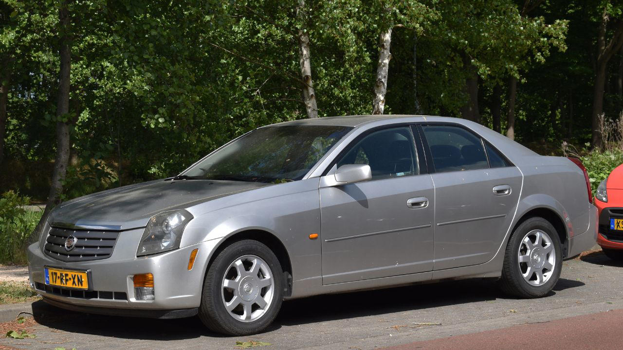 The 2003 CTS featured Cadillac's new 3.2-liter V6, producing 220 horsepower through a five-speed automatic transmission, mounted on GM's Sigma platform that finally gave Cadillac some European-style handling dynamics. The CTS wasn't chosen for its performance credentials: it was picked because its angular design read clearly on camera and its proportions worked well against SUVs and semis.