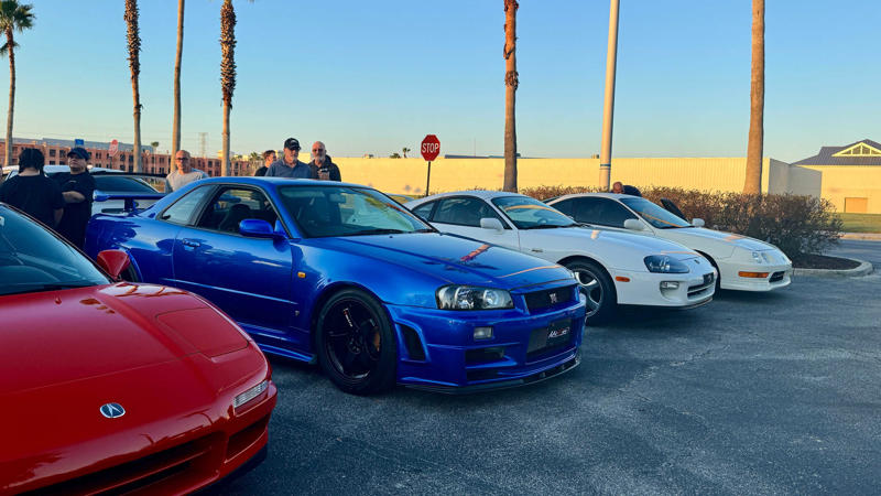 In fact, CarBuzz joined in to help bring 10 vehicles from the CMS collection to the inaugural Orlando Cars & Coffee at Dezerland. These included an R32 Nissan Skyline GT-R (which we drove in the morning), an R33 GT-R LM, Nissan Silvia 270R, Nissan Skyline GT-R Hakosuka (driven by Howard), Acura Integra Type R, Acura NSX Zanardi Edition (driven by Chin), Acura NSX Type S, Toyota Supra 30th Anniversary, Subaru Impreza 22B (which we drove leaving the event), and an E36 BMW M3 Lightweight (the only non-Japanese vehicle in the collection).