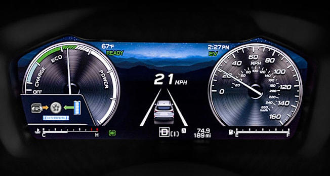 All trim levels have standard all-wheel drive with hill descent control and X-Mode, allowing the driver to optimize traction for, say, deep snow, dirt, and mud. Subaru says the all-wheel-drive system mechanically couples all four wheels, as with nonhybrid Subaru models, and therefore maintains their same capability. Some hybrid competitors, such as models from Toyota, use a separate electric motor for the rear wheels to enable all-wheel drive just at low speeds.