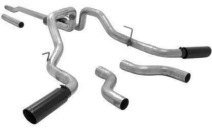 Still, it offers three-inch dual pipes for maximum flow combined with four-inch black ceramic coated tips that give the exhaust a look that's as mean as it sounds. The system uses a Super 10 series muffler, and it attaches to the factory hangar locations to help make the installation quick and easy enough for you to do it from home. One more feature unique to this system, it can be set up to have the dual pipes coming out from the rear of the truck as well as from the sides, depending on what you want.