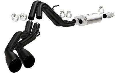 The Street Series exhaust boasts a large stainless-finish Magnaflow muffler, but has black-coated pipes from the end of the muffler all the way back to the tips, for a stealth-cool appearance even when you're under the truck. It's a ceramic coating so you should keep that same look for years of use, on-road as well as off. Magnaflow tests its volume levels using SAE J1169, so your louder exhaust should still be in compliance with the law.