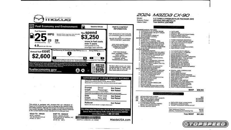 Okay. So, the elephant in the room. My top-of-the-line CX-90 Turbo S Premium Plus evaluation mule stamped its invoice at $61,920 including Mazda's $1,375 destination fee. Either I'm still in sticker shock from today's inflation, or that's one damn expensive Mazda. To put that into perspective, that's a whopping $12,545 more than the old fully-loaded CX-9 Signature. With the CX-90, you do get quite a bit more car, such as a rear-wheel-drive-based platform with all-wheel drive, a brand-spankin' new inline-six with 48-volt mild-hybrid assist, and an eight-speed auto. On paper, the price hike sort of makes sense from a technical standpoint.