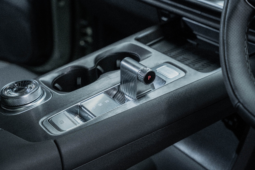 Soft panel kontras warna, handle kokoh di depan penumpang, serta tuas transmisi elektronik bergaya baling-baling pesawat tempur menambah kesan futuristik.