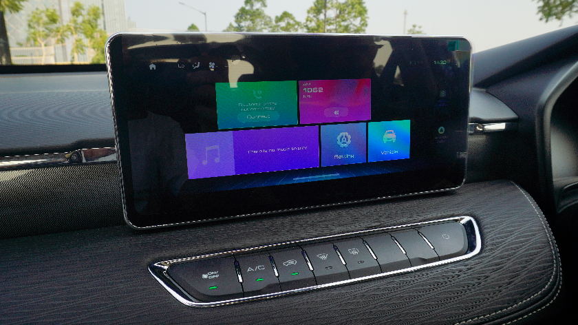 Selain itu, layar head unit berukuran besar dengan tampilan floating, mendukung Apple CarPlay dan Android Auto, serta menyediakan berbagai pengaturan kenyamanan, seperti speed lock, pengaturan spion, hingga pengaturan lampu dan AC.