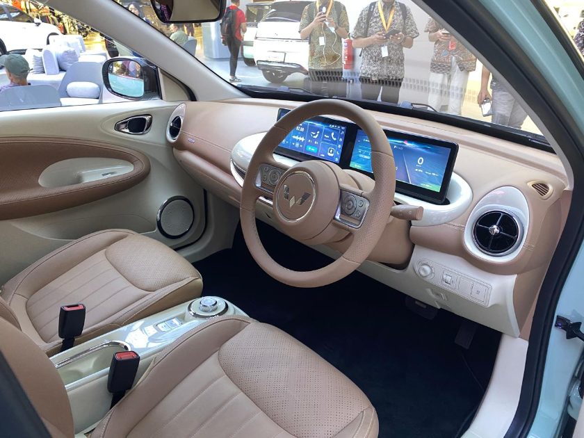 Pada lingkar setir BinguoEV Pro dengan leather covered steering, berbeda pada tipe Lite masih menggunakan polyurethane steering wheel.