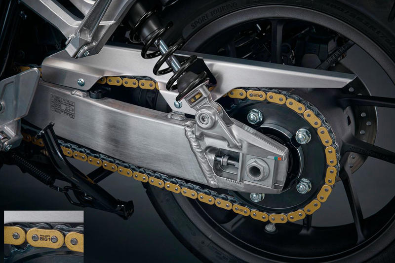 いずれのファイナルエディションにも共通の特別装備として、タンク上面にはファイナルエディションを示す専用ロゴステッカーをマウント。初代の1000と同様に、極太のアルミスイングアームとトップブリッジ、ステアリングステムはシルバーカラー仕上げに変更されるほか、ゴールドチェーンやレッドステッチ入りのシートなど、ファイナルにふさわしい、高級感あるパーツが標準装備される。