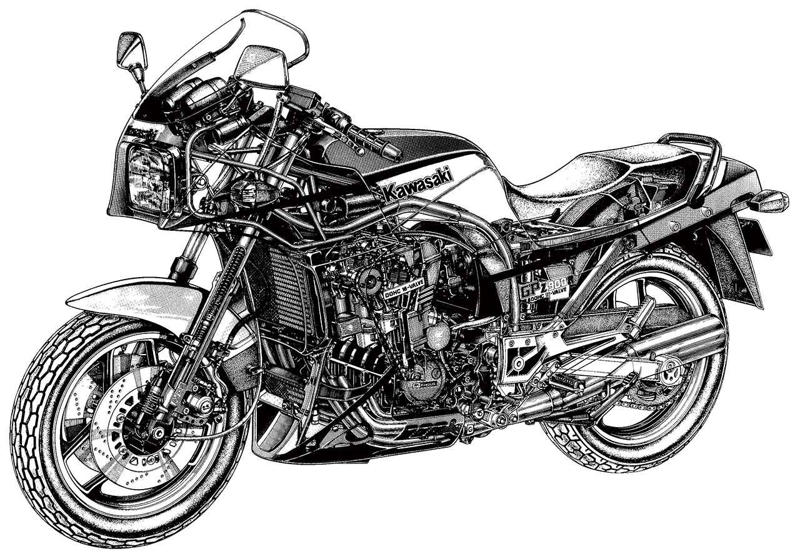 フロントカウルは空冷GPzシリーズのデザインに通じるものを採用。空力特性に優れ、高速性能の向上に大きく寄与した。