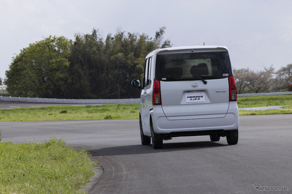 10余年分の進化を確認すべく、新旧商品を装着したダイハツ『タント』で、ドライの高速周回路とウェットのハンドリング路を走行した。タイヤサイズは155/65R14となる。