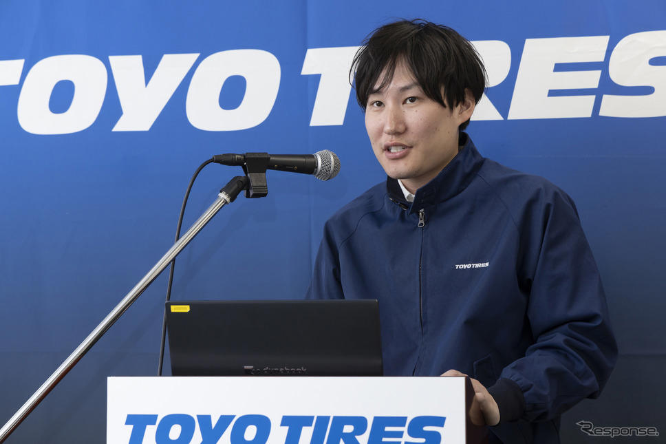 開発担当のREタイヤ開発部 助吉さんによると、サイドをやわらかくした分をパターンで稼ぐという考え方で取り組んだという。3Dサイプをはじめ独自の技術を駆使して、ステアリングを切ったときに倒れ込み、復帰するときに最大限に力が発揮できるように工夫したとのことで、それが微舵領域での応答性のよさにも効いているようだ。