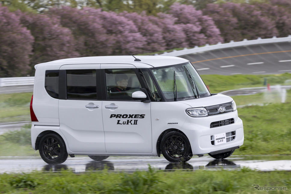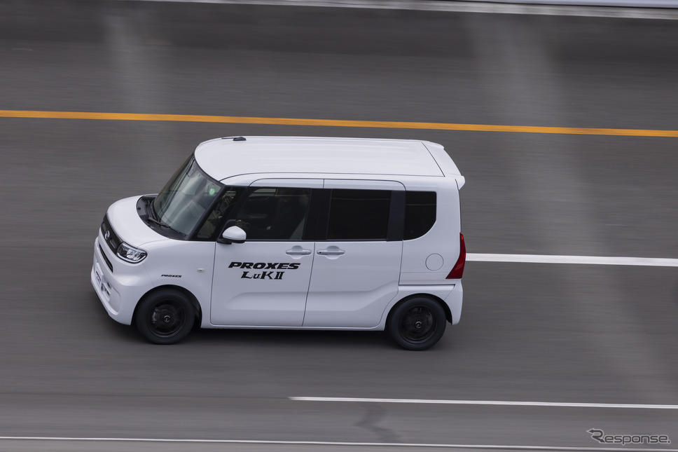 前身のトランパスLukも、発売当時に他社の一般的なタイヤと乗り比べる機会があり、しっかりとした質の高い走りに感銘を受けたものだ。10年あまりの歳月を経て登場したプロクセス LuKIIは、トランパス LuKで培った優れた走りのしっかり感や快適性、耐摩耗性、安全性などの性能を継承しながら、ウェット性能、ブレーキ性能、転がり抵抗などをさらに進化させ、雨の日もより安心して乗れて、運転に快適性をプラスしたという、軽ハイトワゴン専用プレミアムタイヤとなる。