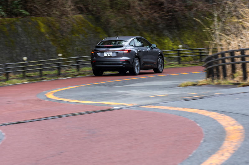 レスポンスはいいが、ガツンとスピードが上がることはない。モーターの設定で鋭さを演出することもできるはずだが、穏やかさが優先されている。Q4 e-tronは後輪駆動なので、スポーティーなハンドリングを期待していた。素直でスムーズな操縦性には好感が持てたが、安定した感覚に終始。求められるのは過敏さでも荒々しさでもなく、信頼度と確実性なのだ。ドラマチックではないものの、リスクを感じることなく大観山までのドライブを楽しんだ。