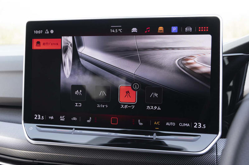 その理由がなんなのかは、はっきりとはわからない。考え得る要因はふたつあって、ひとつは試乗車が19インチのオプションタイヤを履いていたこと。ゴルフは“8型”(第8世代)からそのモジュラープラットフォームを「MQB evo」へと進化させ、ねじり剛性も35%ほど向上させたというが、個人的にはこの骨格に対して、19インチのスポーツタイヤはオーバースペックだと感じた。かといって18インチ仕様を試すことはかなわなかったのだけれど。