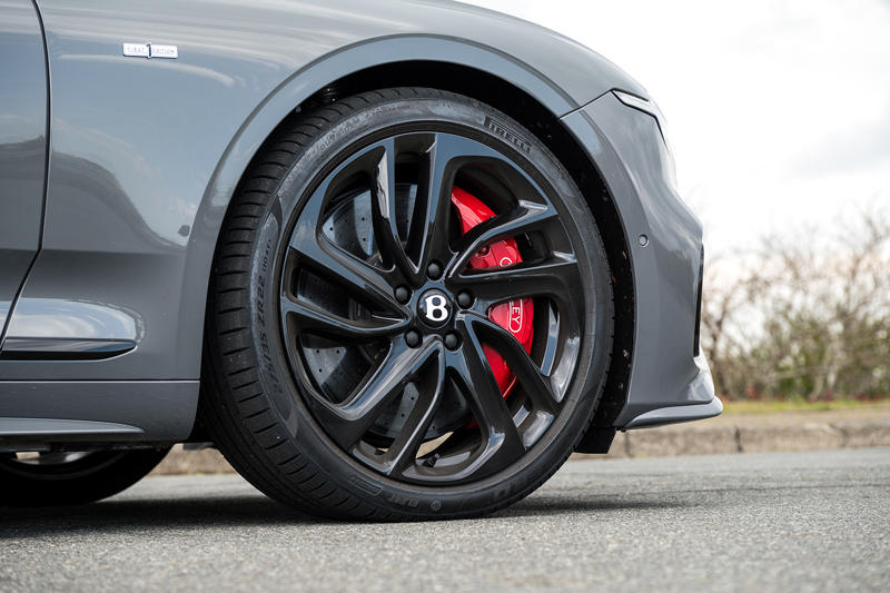 新型スピードのシャシーはあらゆる電子制御システムで完全武装されている。新しい2チャンバー式エアサスペンションと伸び縮み個別制御のデュアルバルブダンパー、リアアクスルステアリング、ベントレー・ダイナミックライド(48Vアクティブスタビライザー)、電子制御LSD等々である。ちょっと不思議なのは、新型パナメーラのプラグインハイブリッド車に採用されている400V駆動のアクティブサスペンション「ポルシェ・アクティブライド」と同様のものが搭載されていないことだ。資料を読む限り、プラグインハイブリッド用400Vとアクティブスタビライザー用48V、それに電装用12Vの3系統が張り巡らされていることになるが、それはずいぶんと複雑である。残念ながら詳細は確認しきれなかったが、いずれにせよシステムの完成度は高く、気持ちよさは源泉かけ流し弱アルカリ性温泉と同じぐらいである。