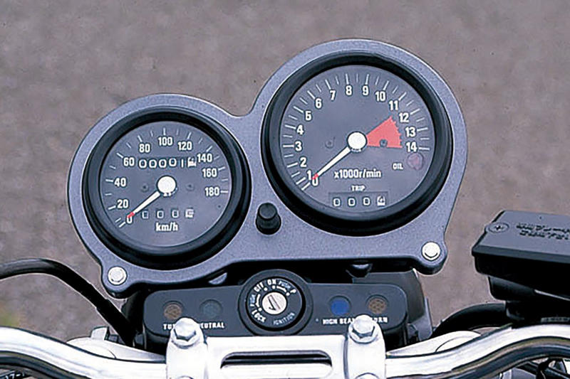 初期型のメーターはタコメーターを大きく取った、レプリカメーターのようなスタイル。これは1990年登場の2型まで引き継がれた。