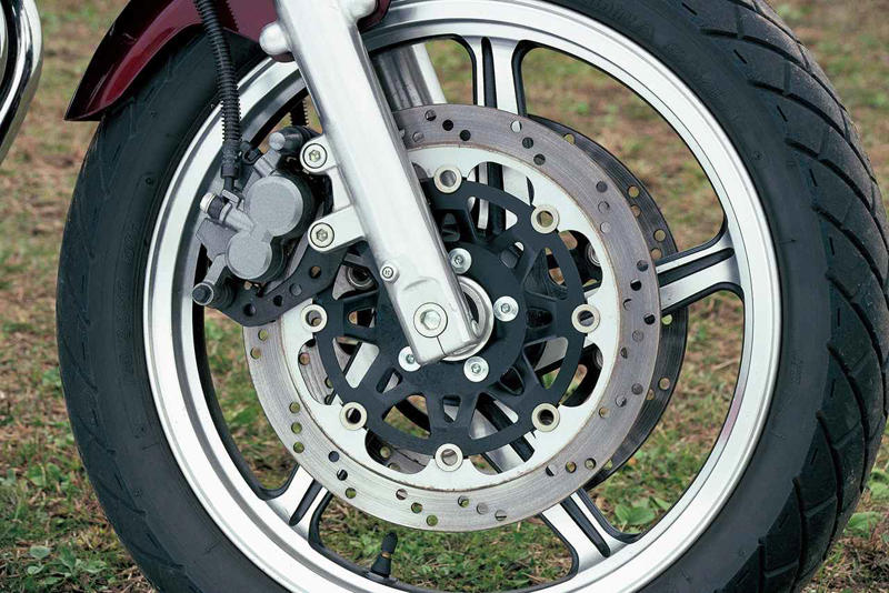 スリムな5本スポークのキャストホイールにΦ300mm径のダブルディスクを採用。足まわりのパーツにはモダンなものがおごられた。