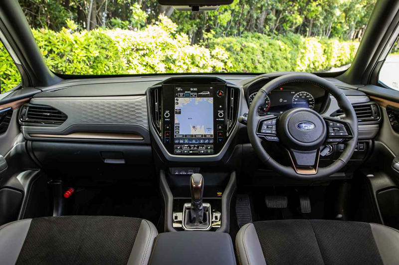 2025年4月に日本での販売がスタートした6代目フォレスターもそうだ。今回の試乗に際して、はじめて目の前にした最新モデルはボディサイズの拡大を最小限に抑えつつも、従来より水平で、より垂直なボディパネルで構成されているように感じられ、エクステリアデザインから受ける重厚感が強い。