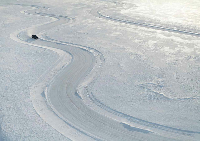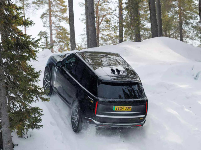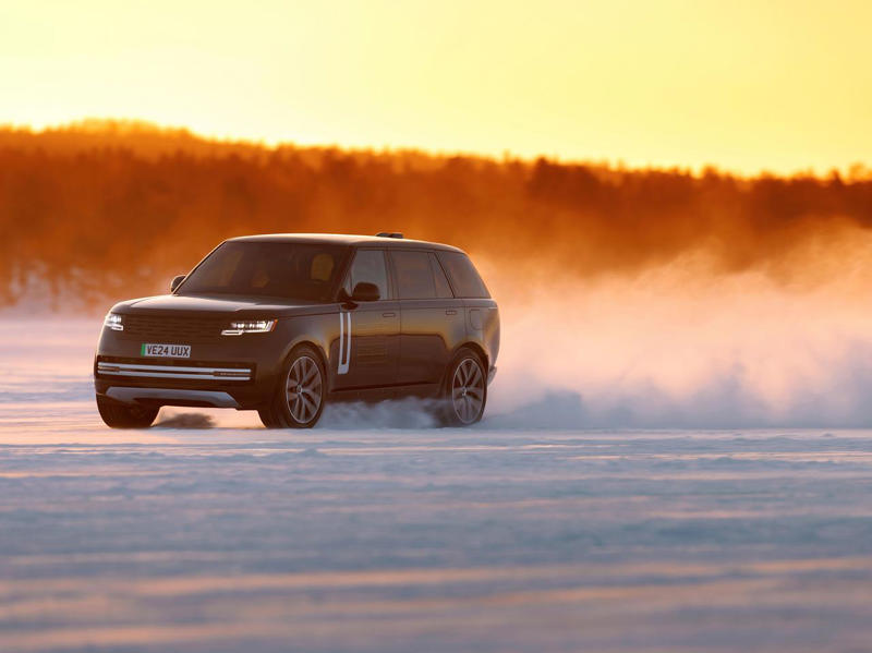 北極圏で極寒テストを行う「レンジローバー エレクトリック」のプロトタイプ車両。「レンジローバー エレクトリック」は自社設計・製造の800Vの高電圧バッテリーを搭載。氷上でのトラクション性能もチェックされた。