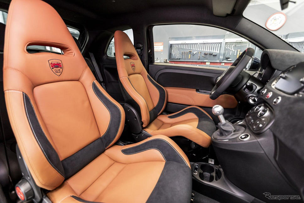 内装も特別仕様で、タバコ色の特別な革で覆われたレーシングバケットシートや、レザーとアルカンターラを組み合わせたステアリングホイールを採用。ダッシュボードのスポーツボタンとシートの刺繍にはクラブイタリアのロゴが配置されている。