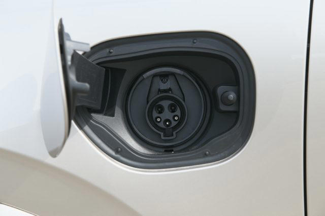 給電口は車体の前部左側側面に備わる。プラグインハイブリッドなので急速充電用はなく、200Vの家庭用給電口だけが装備されている。
