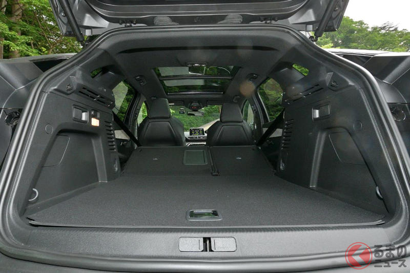 リアシートを倒すと広大な荷室空間を確保することもできるいっぽうで室内は広く、運転席や助手席はもちろん後席も大人が落ち着いて座ることができるパッケージングは、ファミリーカーとしても親和性が高い。