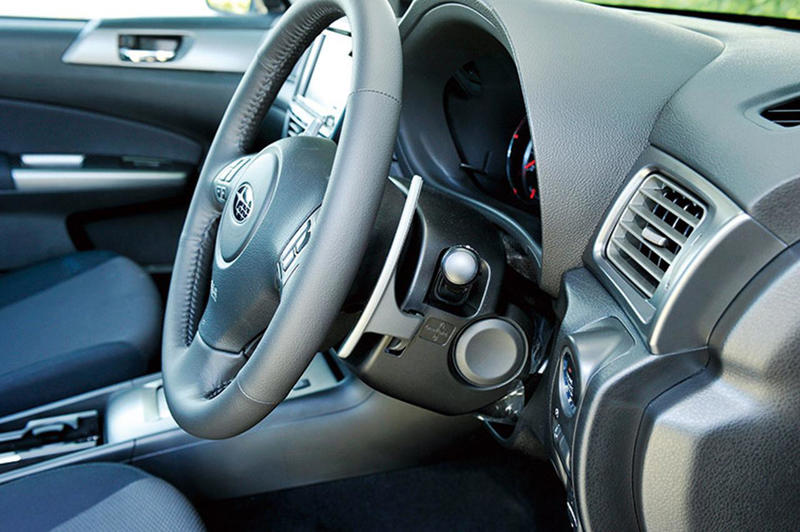 FFモデルのトランスミッションは全グレードCVTとなる。スバルがリニアトロニックと呼ぶこのCVTは金属チェーン式で、滑り感のないリニアな加速フィールが特徴となるが、最廉価グレードの2.0iを除いた全車にパドルシフトも標準装着した。右手側を引くとシフトアップ、左手側を引くとダウンのパターンで、パドルはコラムに直付けされた「ラテン車式」。6速のマニュアルモード操作が可能で、シフトノブがDレンジの状態でも使用可能。素早い変速レスポンスと相まって、これは積極的に使いたくなる出来栄えだ。