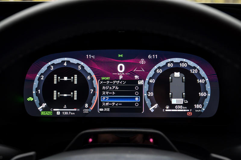 今回試乗したエステートはZグレード。心臓部はほかのFF系クラウンと同じ2.5リッターハイブリッドだが、先に“ほぼ”共通と書いたのは、エステートだけエンジンチューンが少しだけ強力で、フロントモーターもパワフルなタイプになるからだ。先行したクロスオーバーとスポーツのZのフロントモーターが最高出力およそ120PS、最大トルク202N・mの3NM型なのに対して、エステートのそれはプラグインハイブリッドと共通の5NM型で、182PS、270N・mをうたう。