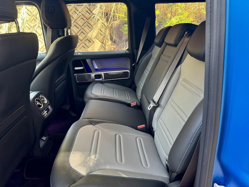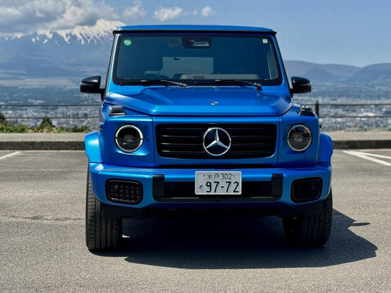 今回乗ったのは「G 580 with EQ Technology Edition1(エディションワン)」という導入モデル。「AMGラインパッケージ」「ナイトパッケージ」、ブルーアクセントをもった「サイドストリップライン」「ブルーブレーキキャリパー」などが専用装備となる。フロントマスクに先進的な表情を与えるという「ブラックパネルラジエターグリル」はオプションだ。