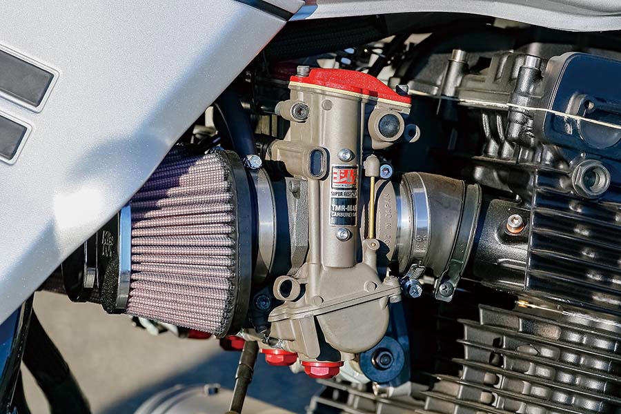 吸排気系はTMR-MJNφ40mmキャブレターにK&Nフィルターを組み合わせ、ブライトロジックオリジナル4-1マフラーを装着。