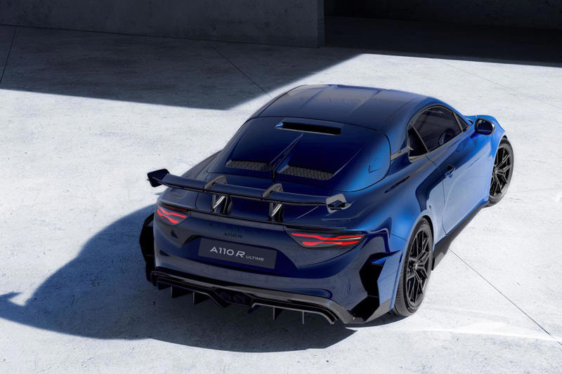 アルピーヌ A110史上最も高性能な「アルピーヌ A110 R ウルティム」。最高出力325psまでパワーアップされた1.8L直噴ターボエンジンだけでなく、シャシ、サスペンション、エアロダイナミクスも最新のレーシング技術でチューンされている。