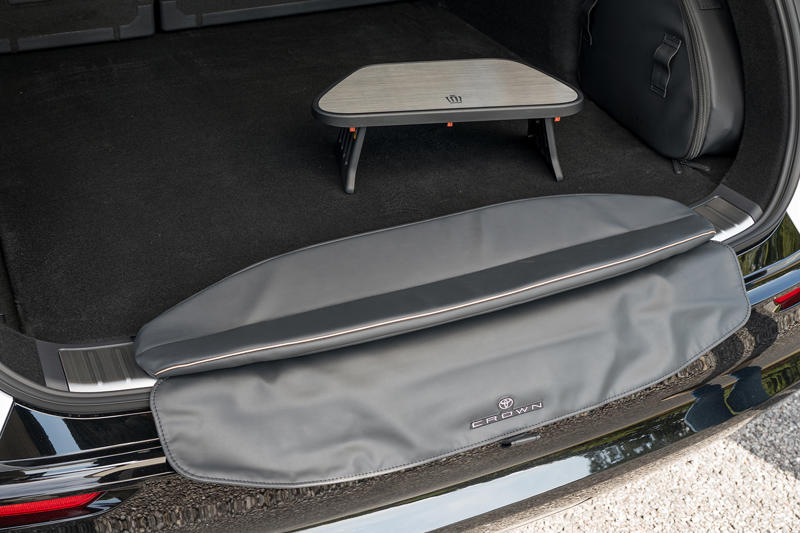 さらにこの荷室には、いわゆるテールゲートピクニックを可能にするデッキチェアや、その時に肘をつけるようなデッキテーブルといったアイテムも備わる。スイッチひとつで椅子とテーブルが現れる「ロールス・ロイス・カリナン」のビューイングスイートのように、シャンパーニュでも開けようかという気にまではさせないが、せっかくの大容量、その空間を粋に使ってほしいということなのだろう。確かに荷室長が2mあろうが、クラウンに車中泊はちょっと似合わない。