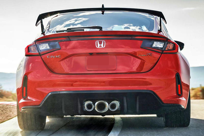 2025年モデルのシビックタイプRは、従来よりも洗練された印象を持つエクステリアが特徴。大型リアウィングと鋭いボディラインは高性能モデルらしさを強調しながらも、全体的には抑制の効いたデザインに仕上げられている。スポーティさと大衆性のバランスが絶妙で、幅広いユーザー層に訴求する仕様となっている。