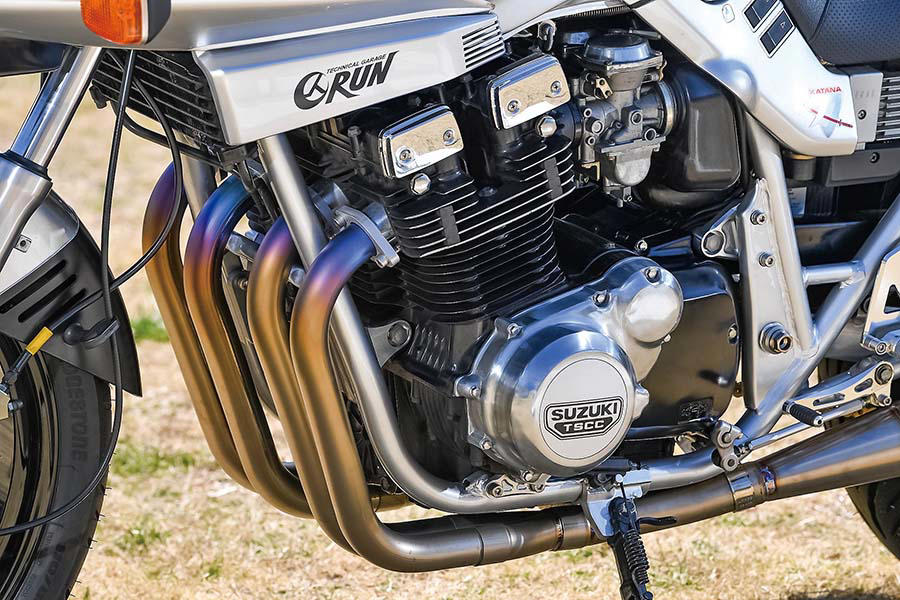 空冷カタナらしい印象をそのままに、今新たにラインオフされたかのような仕上がりを見せるこのカタナ・ファイナルエディション。テクニカルガレージRUN(以下TG-0RUN)によるものだが、じつは2年ほど前のこの欄でも紹介している車両だ。