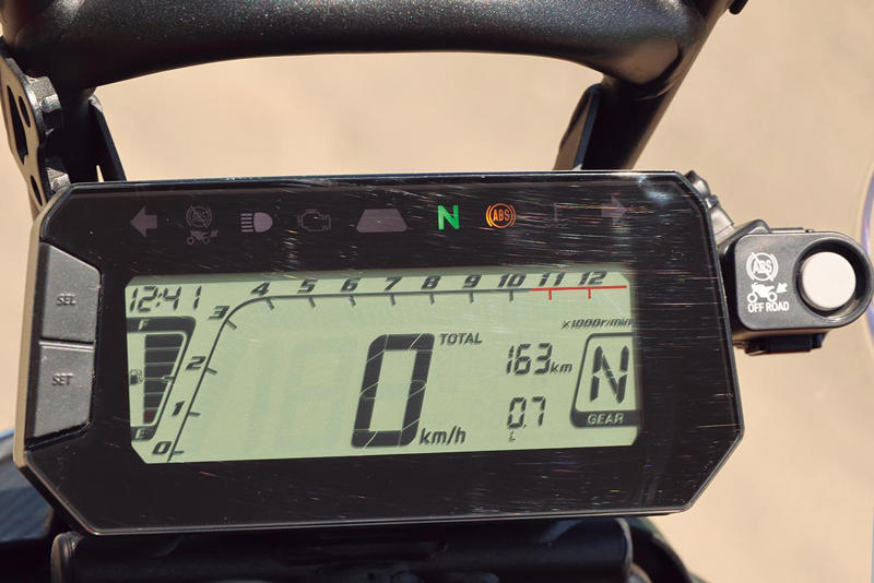 加えて、ダカールマシンを思わせる特徴的な大型ウインドスクリーンと、標準装備されるナックルガードの防風効果、サスセッティングの変更も大きく、120km/h以下のクルージングでの快適性はオフ車とは思えないほど高い。
