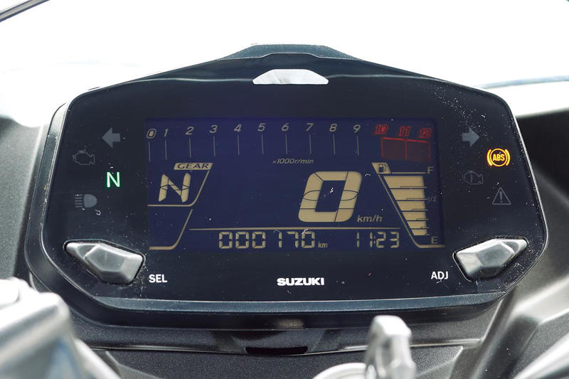 多機能デジタルメーターを採用。バーグラフ式タコメーター、ツイントリップ、ギアポジション、時計、燃料計などを表示する。
