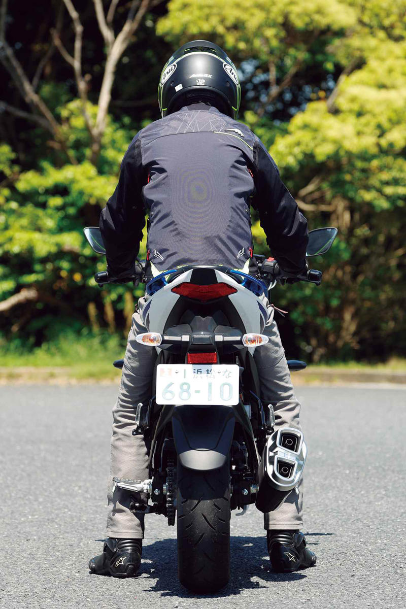 サスペンションのスプリングはフロントがやや柔らかめ、リアがやや硬めの感触。これはアジア諸国の道路事情や2人乗り頻度の高さを考慮しているのだろう。実際、タンデム走行時の方が車体姿勢が安定し、リアからの突き上げも減って乗り心地が良かった。