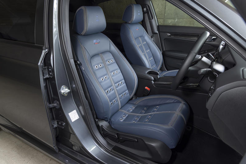 そんなエクステリアと比較すると、インテリアは基本的に後付け部品のみの軽微な仕立てとなるのも、いつものミツオカだ。ステアリングホイールの専用バッジのほか、現在はオプションあつかいとなっている本革シートカバーも、ゼロエディションでは標準装備である。そこかしこにあしらわれたカーボン加飾パネルはディーラーオプションという。本革シートカバーのステッチパターンやハトメ加工もいかにも1970年代風だが、金属メッシュをあしらった現行シビックのダッシュボードと絶妙にマッチしているのが面白い。