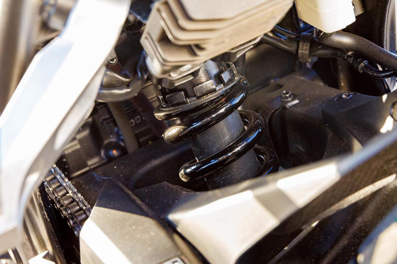 スイングアームは高剛性のアルミ製で構成。スタンダードのリアショックは、ショーワ製分離加圧式シングルチューブタイプを採用している。