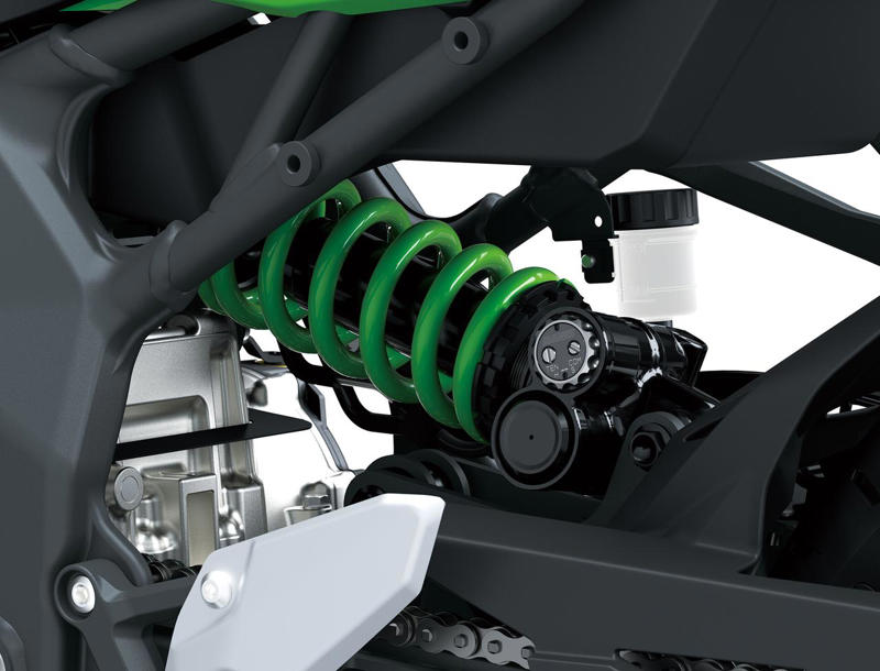 このRRはリアサスペンションに専用のアイテムが備わります。それはショーワ製の「BFRC-Lite(バランス・フリー・リア・クッション)」ユニット。兄貴分のZX-4RRなどにも同様のタイプが採用されている高級ショックユニットで、もちろんフルアジャスタブル。