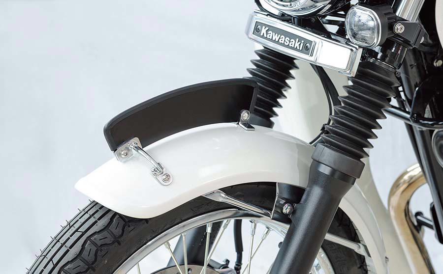 生誕から60周年を迎えたカワサキのWブランド。末弟W230のスレンダーなボディにも、当時流行った“堂々感”を加えられるのだ。