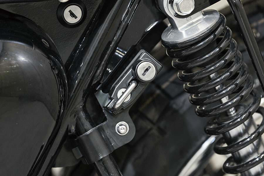 キジマカスタムの定番、もはや必需品のヘルメットロック(4400円)。