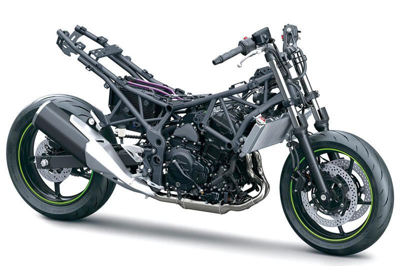 パワーユニットのベースはニンジャ500用の451ccパラレルツインで、トランスミッションは6速リターン。これを電子制御でAT化している。
